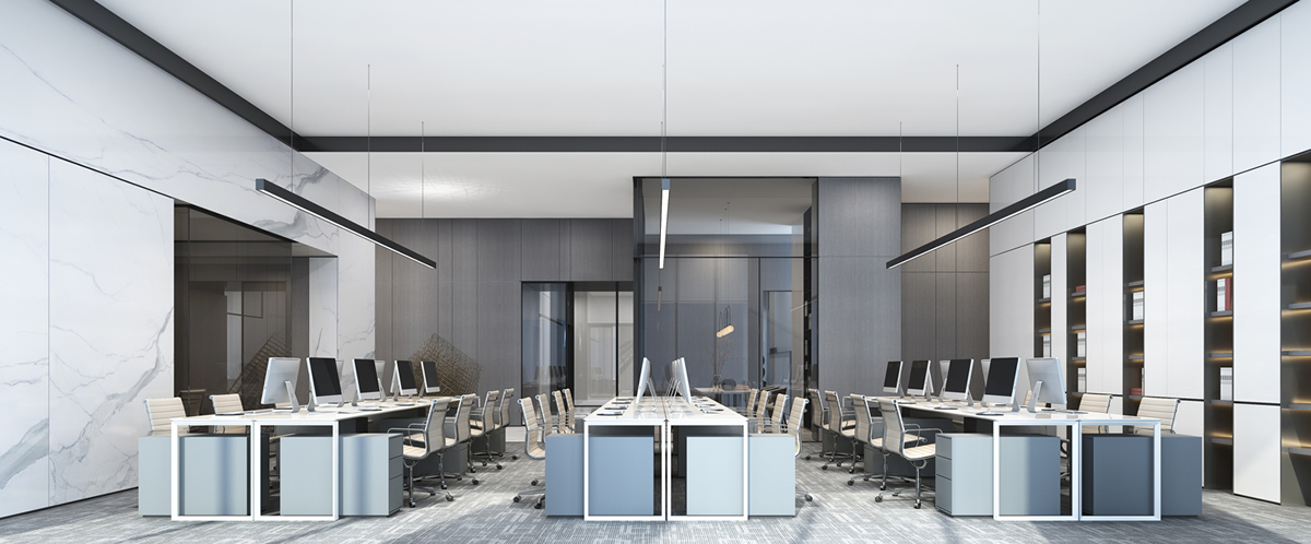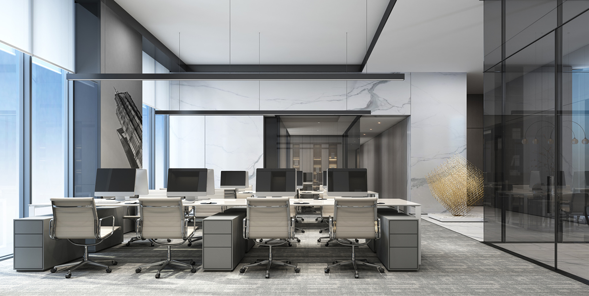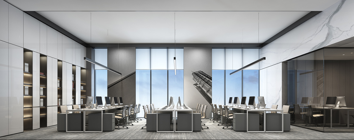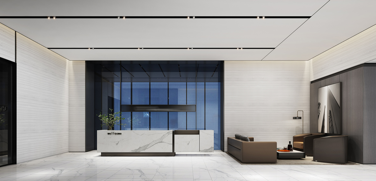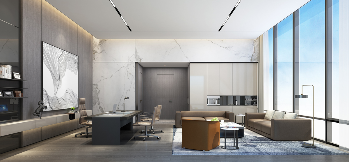 本案从整体设计来看,恢弘大气,功能齐全,布局严谨;从装饰主材上看,本案大量使用了大理石饰材,质感鲜明,效果突出,给人以高端大气之感;从风格上来讲,本案是典型的现代办公室设计风格。
