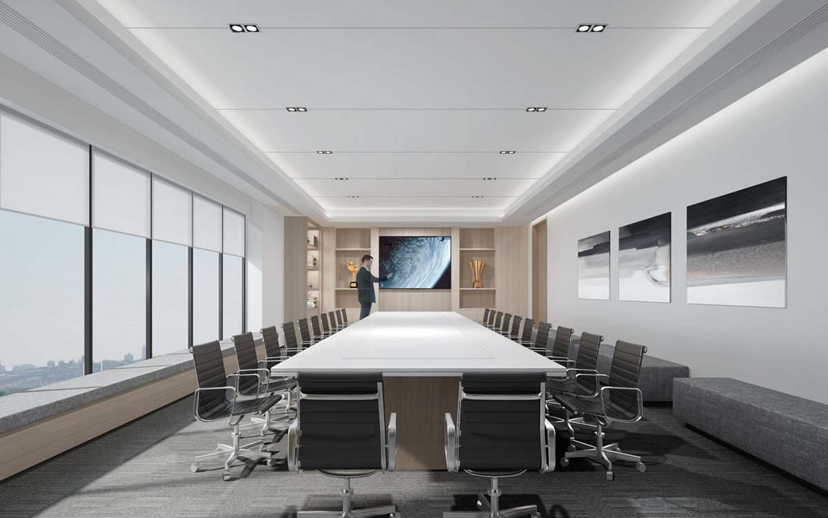 会议室是开会的场所,设计的合理性直接影响了开会者的开会效率。完美的会议室规划设计除了可提供参会人员舒适的环境外,更重要的是给与会者一种临场感,以达到良好的沟通交流效果。