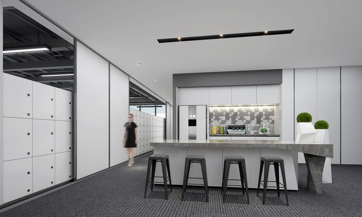 茶水间是办公室内部一个很重要的空间,它是员工休息和交流的场所,也是一个展示公司文化的重要窗口。本案的茶水间设在员工办公区的中间区域,没有过多的空间,因此,茶水间相对比较简单。