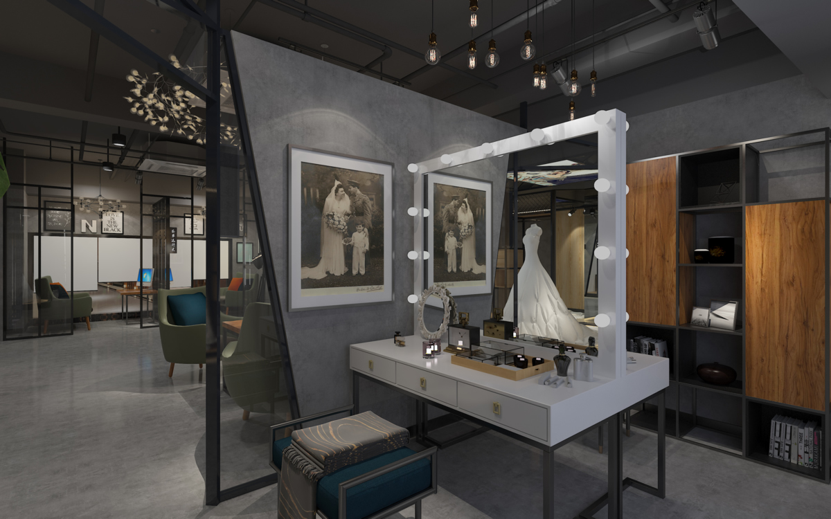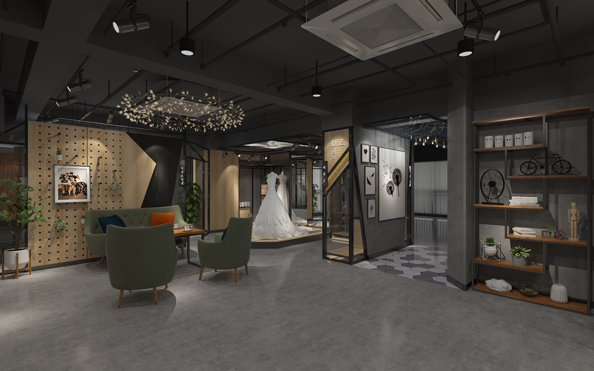 本案婚纱摄影店是为新人提供婚纱租赁、购买服务关且摄影的专业店铺,其设计需要吸引顾客、提升购物体验至关重要。此空间不大,客户要求小而精的设计,因此婚纱店的空间布局、陈设设计、灯光照明、色彩搭配和音乐氛围等方面需要配合巧妙。