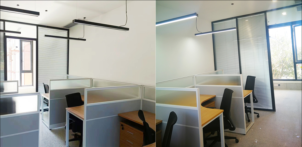 员工办公区:双层石膏板吊顶,内嵌线条灯,没有多余复杂的造型,经理办公室采用双玻百叶隔断,不仅起到一定的隔离和遮挡作用,保护隐私,同时不影响采光和空间的透明感。整个设计上采用统一规范、简洁少装饰的手法,体现亲近、和谐的现代感。空间布局有对称的层次感,保障功能健全,突出现代办公环境讲究效率的特征。