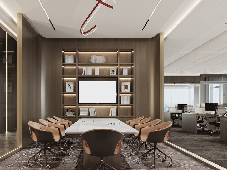 设计师以“古今交融,简约而不简单”为设计理念,旨在打造一个既有现代感又不失中式韵味的办公环境。通过运用传统中式元素与现代设计手法的结合,将中国传统文化与现代审美相结合,营造出一种独特的新中式风格。