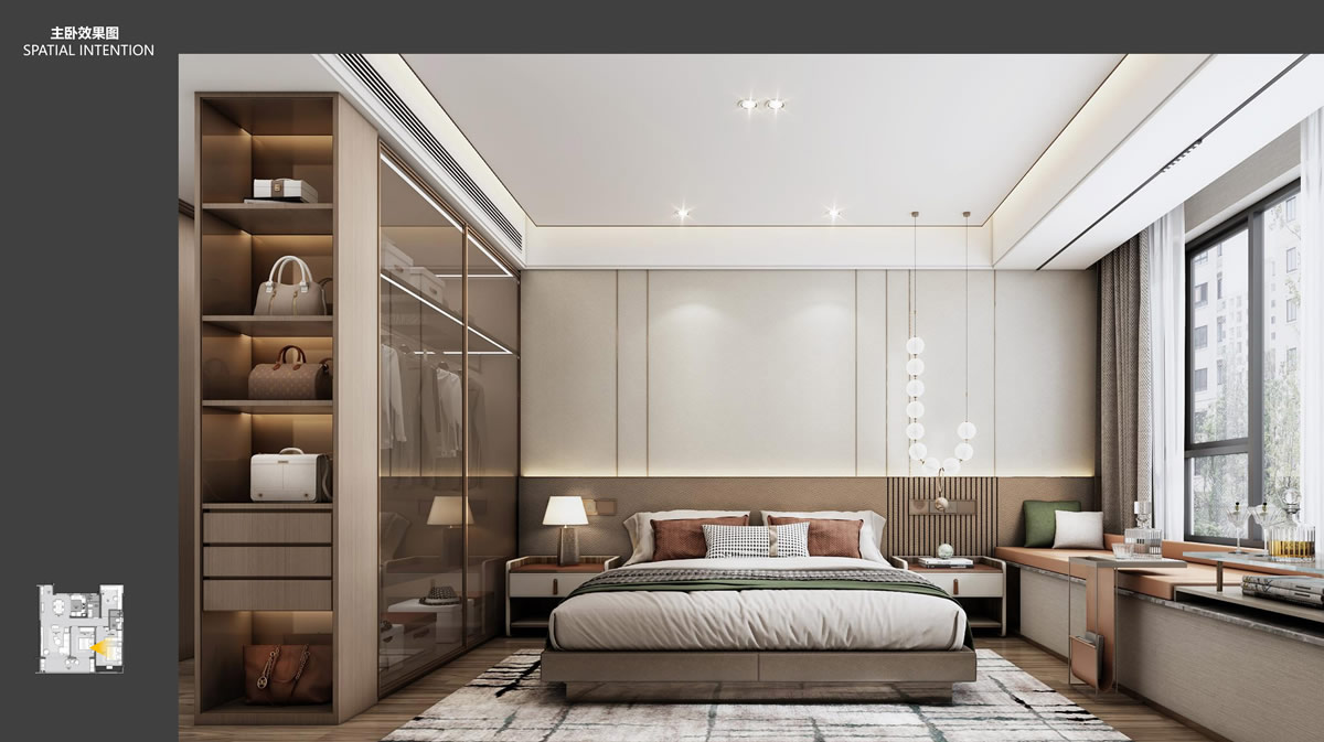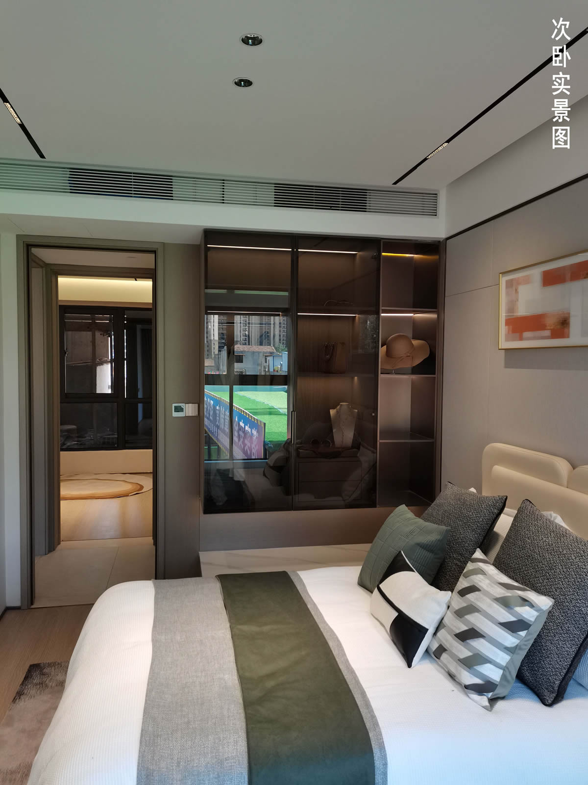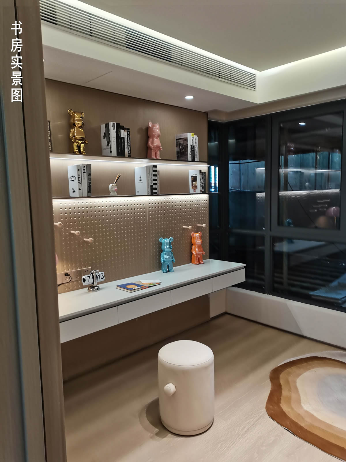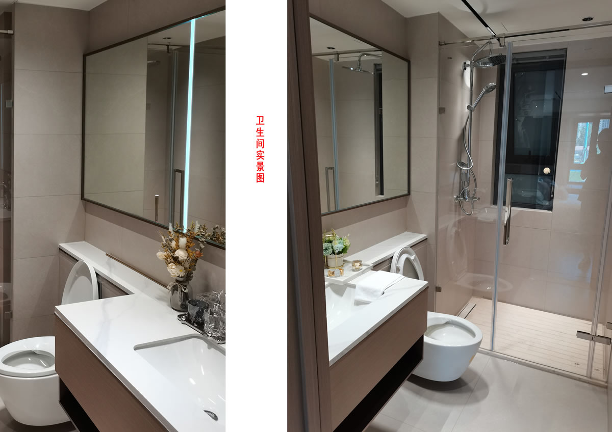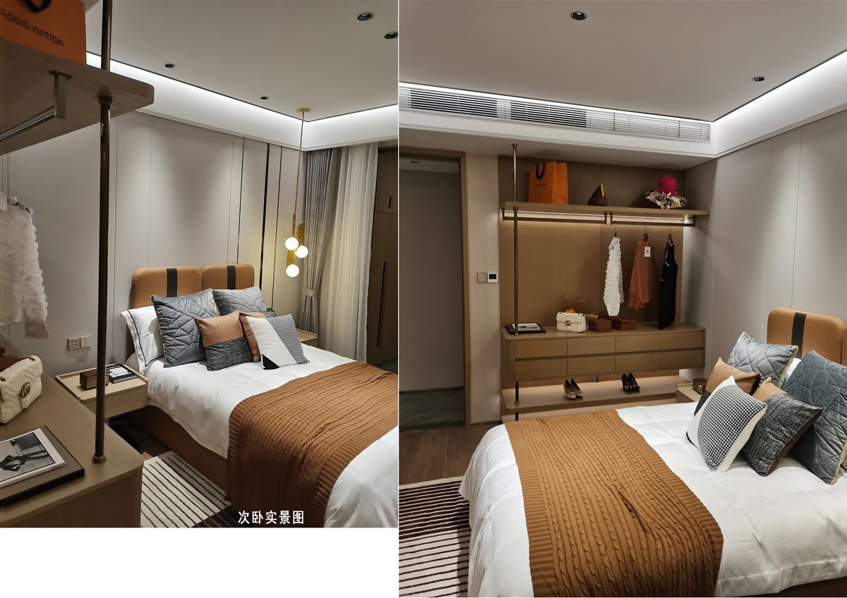 项目概况:本案位于淮北市濉溪县二里庄,样板间位于11号楼201与202室,规划为客厅、餐厅、厨房、次卧、休闲阳台 、外卫、书房、主卧、主卫等功能布局。主要装饰材料如下:客餐厅、过道、房间为纸面石膏板吊顶,白色涂料饰面;卫生间、厨房防水纸面石膏板吊顶,防水白色涂料饰面。客餐厅、过道墙面木工板基层,木饰面及布艺硬包饰面加不锈钢造型线条装饰;客厅电视背景钢架及木工板基础,冷翡翠岩板饰面及不锈钢展示柜装饰;地面800地砖满铺。厨房、卫生间墙面600*1200瓷砖满铺;地面、墙角防水满刷,600*600地砖通缝铺贴,淋浴区金镶玉大理石地面拉槽。房间及书房背景木工板基层,皮质硬包饰面加不锈钢造型线条装饰,其余墙面为墙布饰面;地面为实木多层地板铺设,极窄铜压条收口。