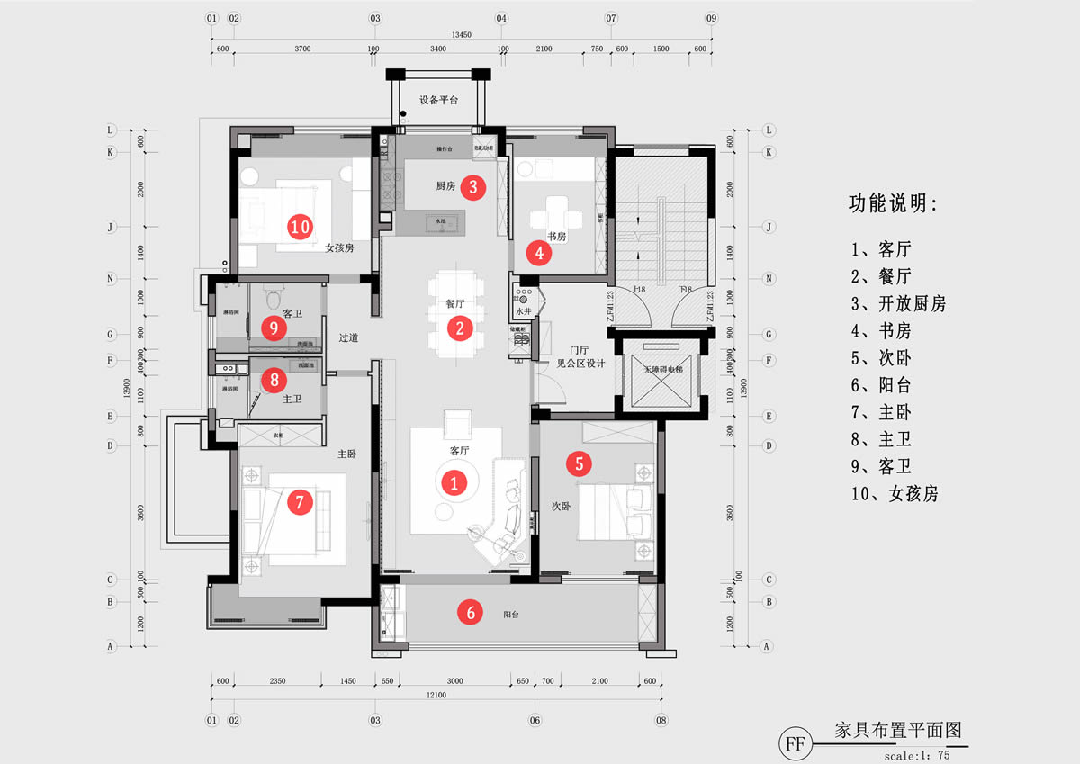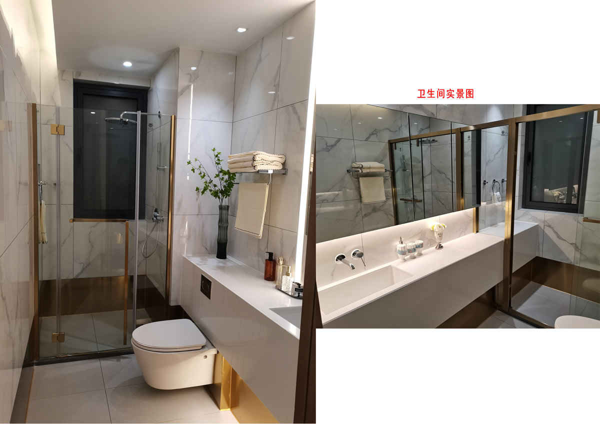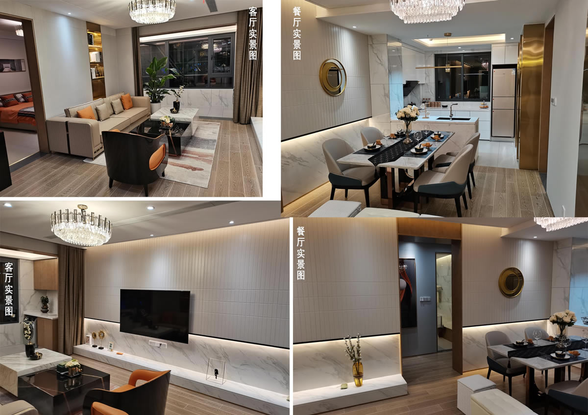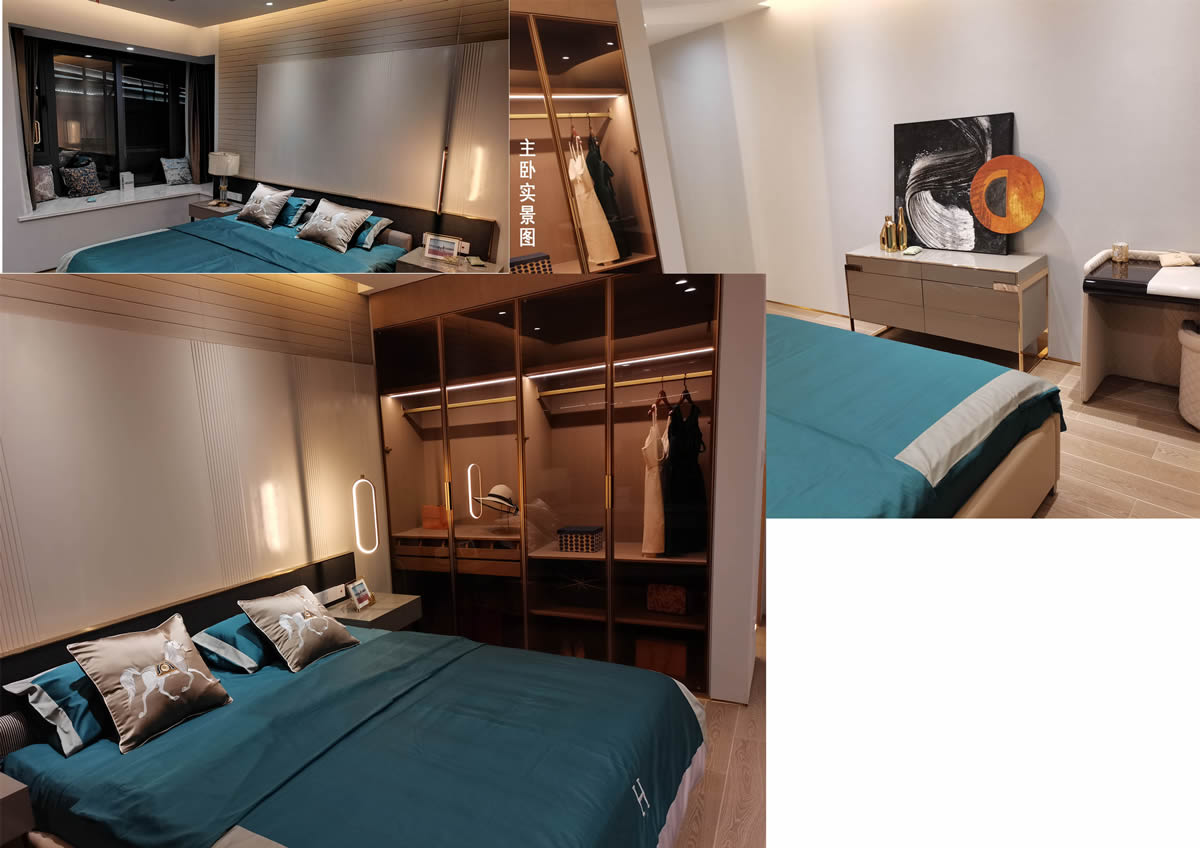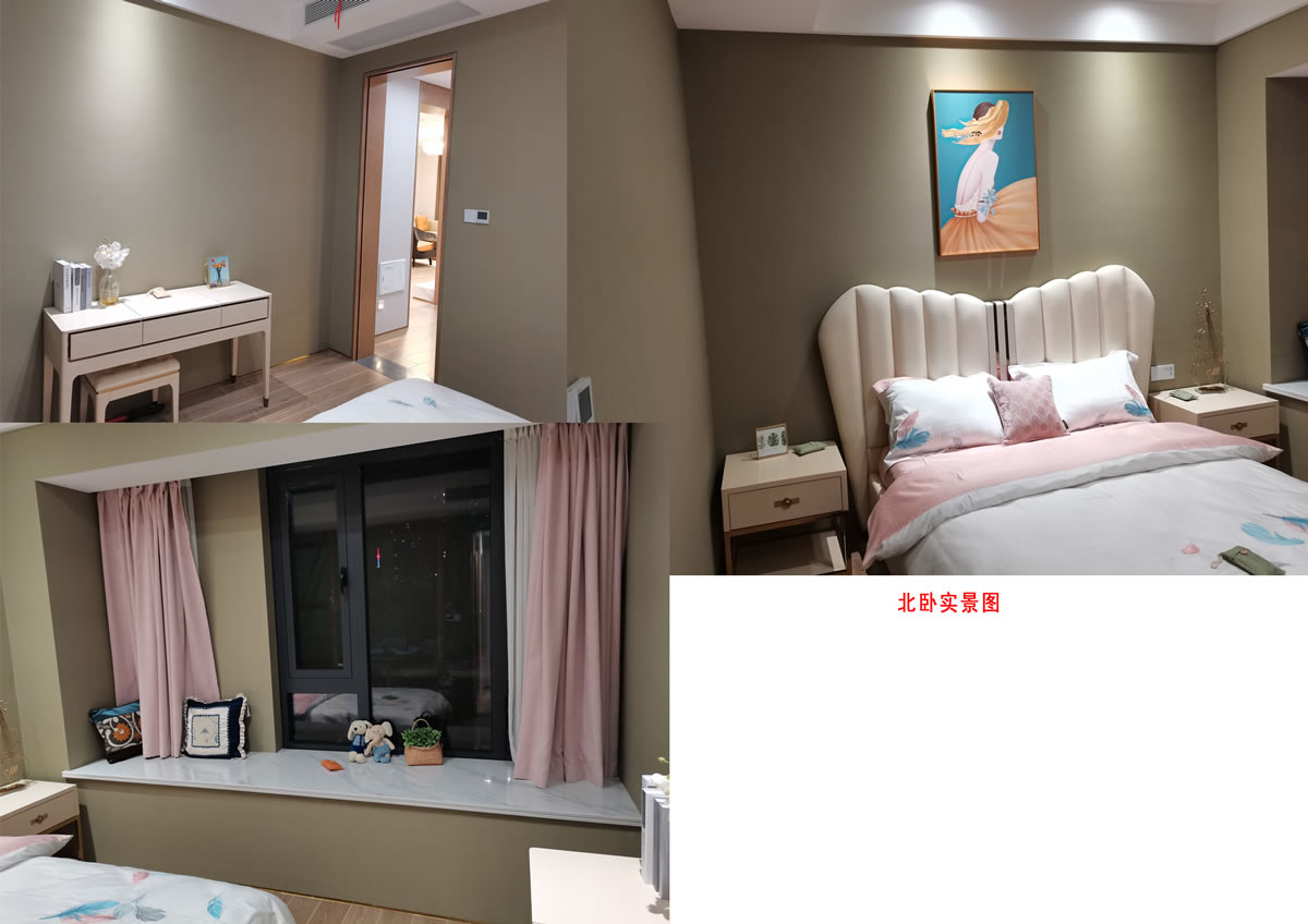 项目概况:本案位于淮北市相山区人民中路与泉山路交叉口西北角,样板间位于7号楼204室,规划为客厅、餐厅、开放式厨房、书房、次卧、阳台 、主卧、主卫、客卫、女孩房等功能布局。主要装饰材料如下:客餐厅、过道、房间为纸面石膏板吊顶,白色涂料饰面;卫生间、厨房防水纸面石膏板吊顶,防水白色涂料饰面。客餐厅、过道墙面木工板基层,木饰面及布艺硬包饰面加;客厅电视背景木工板基础,工艺拉槽烤漆木饰面及天然雅士白天大理石地台装饰;地面实木多层地板满铺。卫生间墙面800*800瓷砖铺贴加40公分高不锈钢踢脚线;地面、墙角防水满刷,400*800地砖通缝铺贴。厨房、阳台墙面800*800瓷砖满铺,地面400*800地砖通缝铺贴。主卧墙面背景木工板基层,皮质硬包饰面加工艺拉槽烤漆木饰面,其余墙面为墙布饰面;地面为实木多层地板铺设。次卧墙面背景木工板基层,皮质硬包饰面,其余墙面为墙布饰面;地面为整块羊毛地毯铺设。女孩房及书房墙面墙布饰面、订制整面墙书柜,地面为实木多层地板铺设。