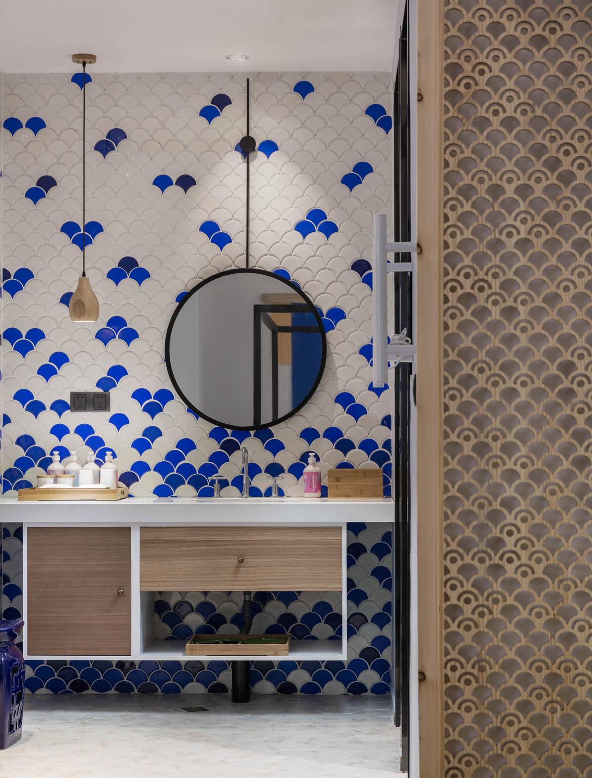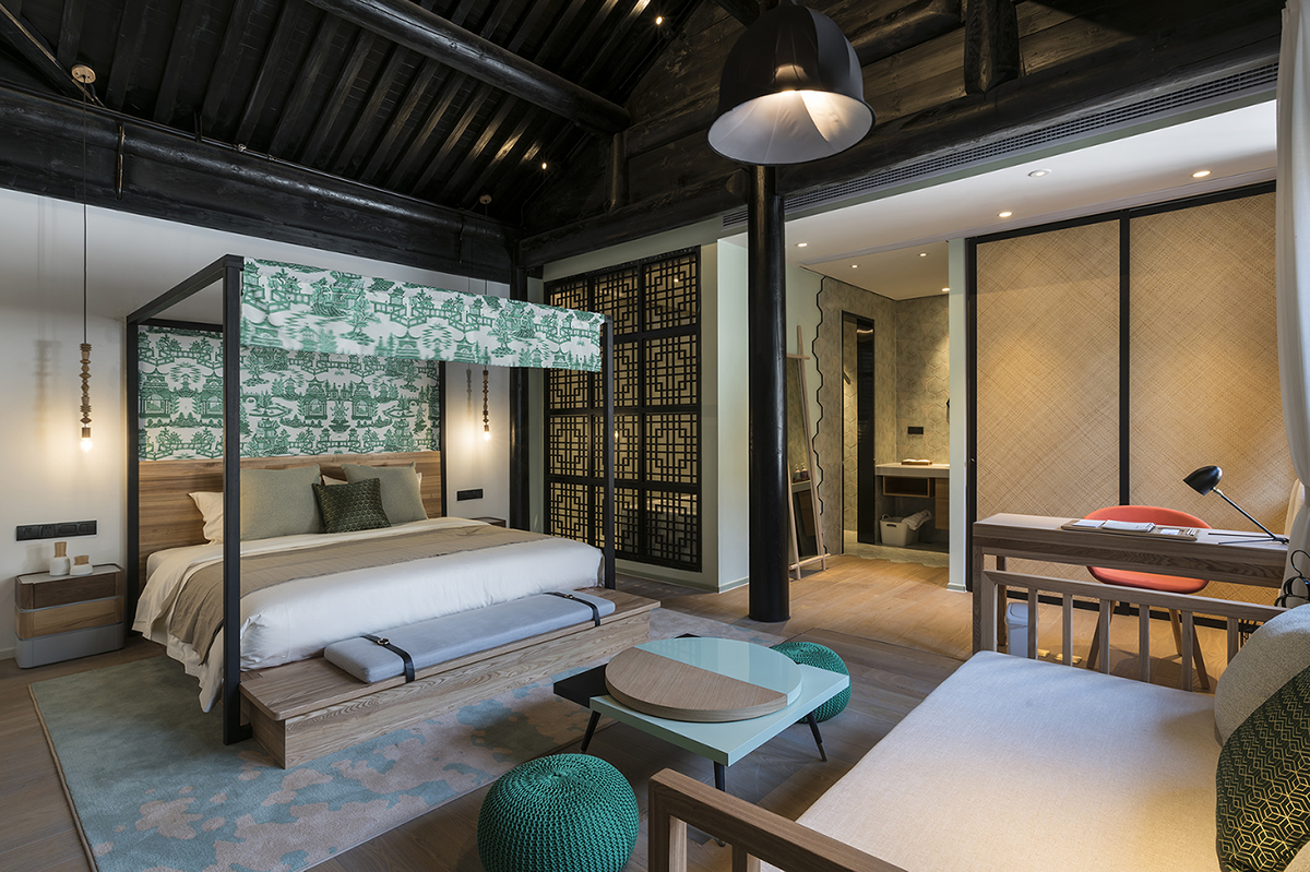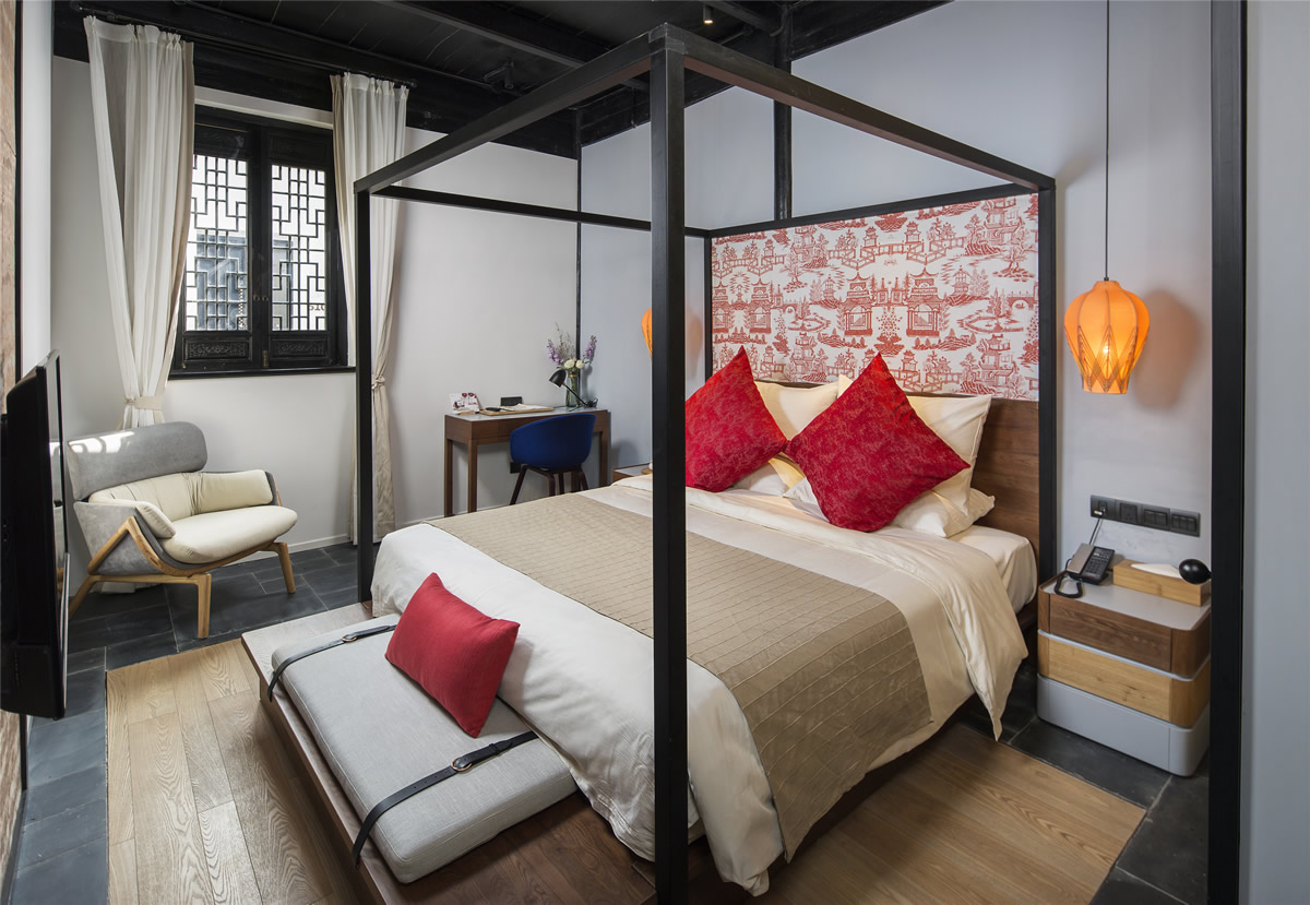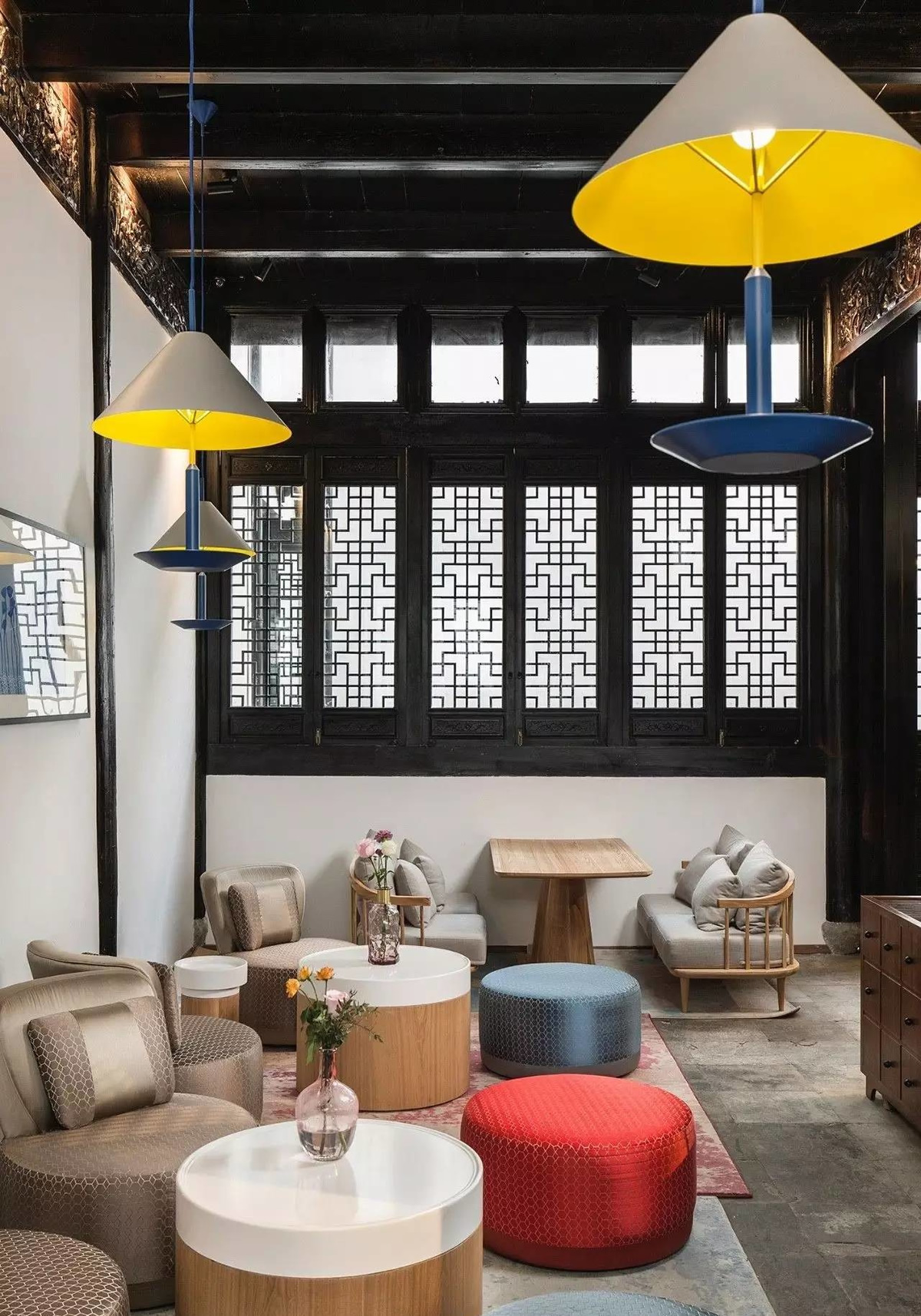 新中式室内设计在选择使用木质、石材、丝纱织物等材料的同时,还会选择玻璃、金属、墙纸、仿古瓷砖等现代材料,使得室内空间既含有浓重的东方气质,又具有灵活的现代感。