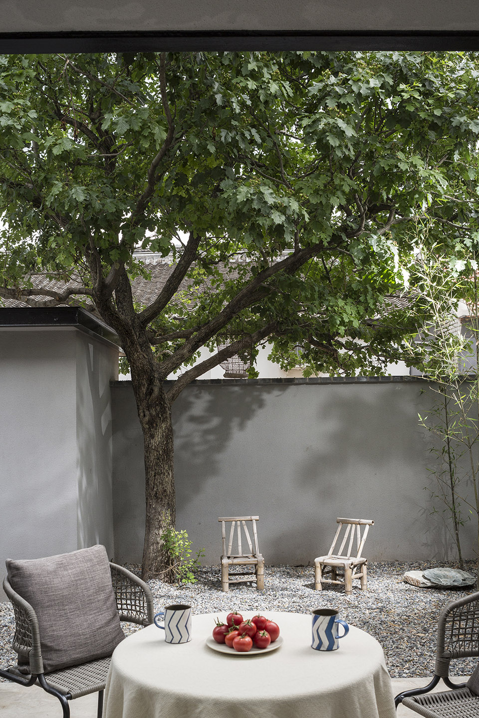 仿古的庭院里,保留了原来的老树,屋里没有一件老旧物件,从卧床到桌椅都是国外设计生产的品牌家居。住在这里的住客大多喜欢这种“大隐于市、小隐于野”的感觉。