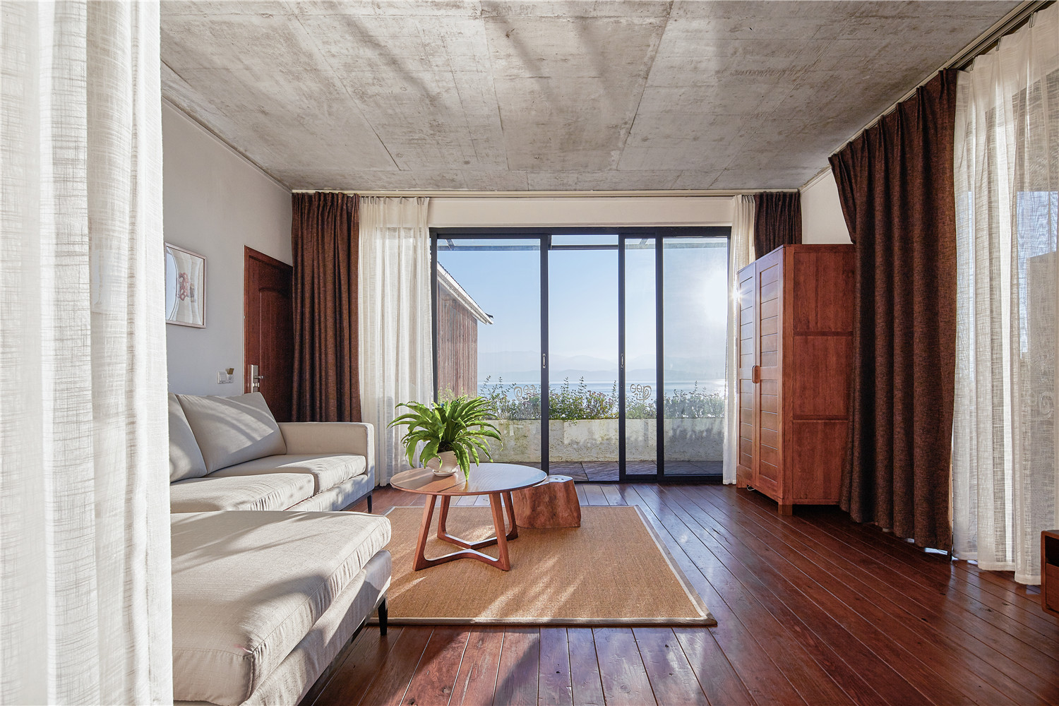 大理洱海环海西路葭蓬村是一个环洱海最小的自然村,村庄周围环绕着独有的自然景观—海西湿地:杨柳垂荫,芦苇飞絮,水鸟游弋,天蓝海清。整个村庄宁静秀美,五六间小客栈沿湿地岸线散布。在这些客栈里有一家有设计感的特别客栈。