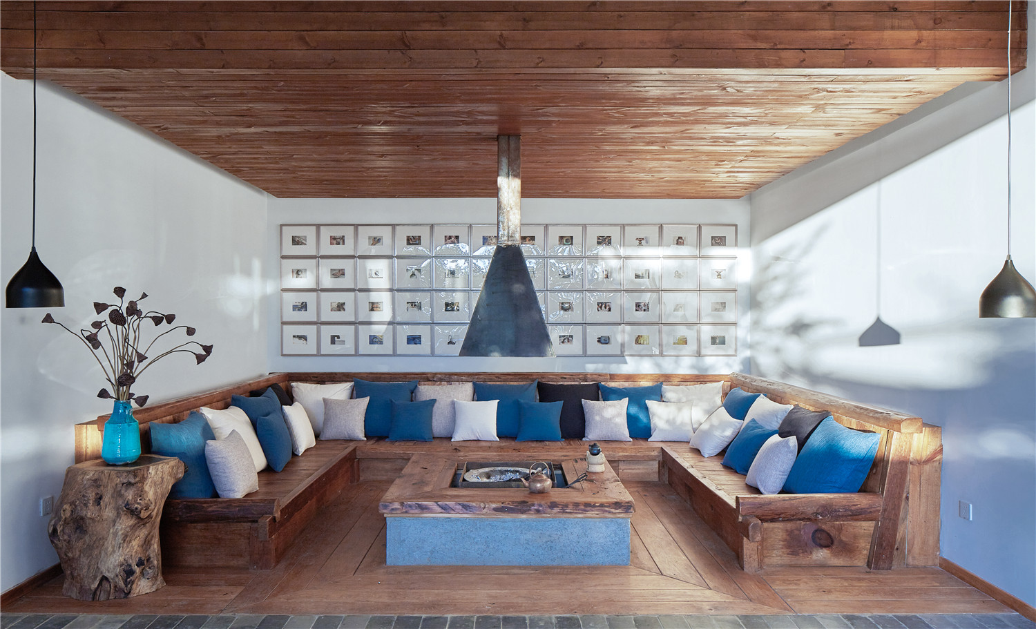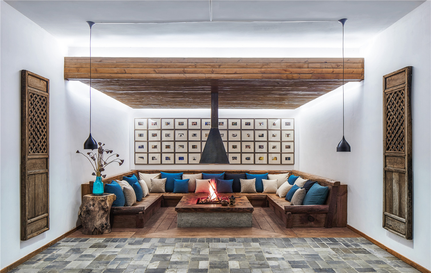 它是一处300㎡的农宅基础上改造而成的,建成后的面积达到1000多平方米。从项目选址策划、建筑方案及施工图设计、室内(包含软装、家具设计及现场制作)及景观设计,施工现场等,整个项目从最初草图至施工结束一共花了两年半时间。