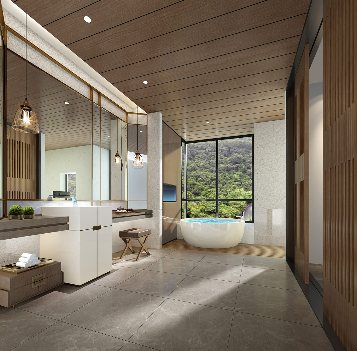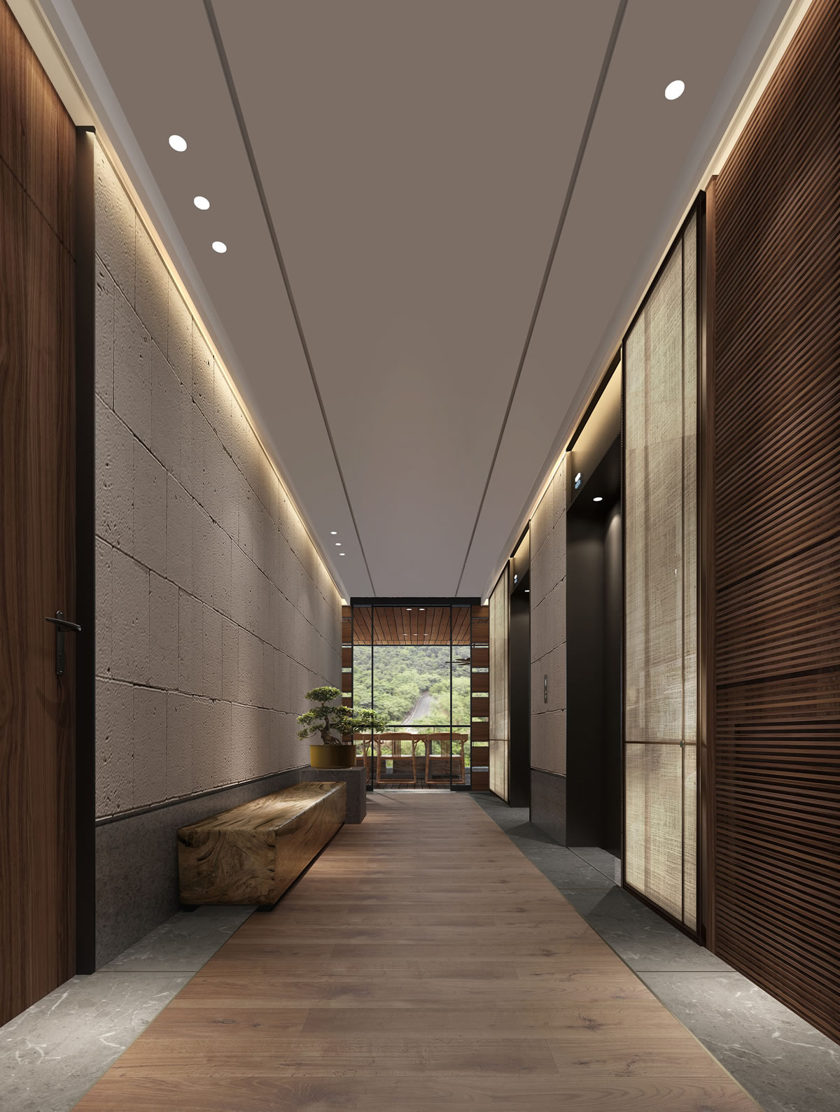 力求空间中使用的每一块材质都散发着优雅的自然之美,且富有韵律;材质粗矿而又做工精良无论在视觉还是触觉都能让居者在这里感受到身心愉悦放松。