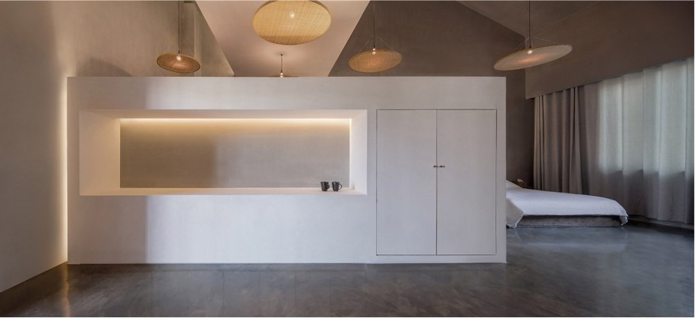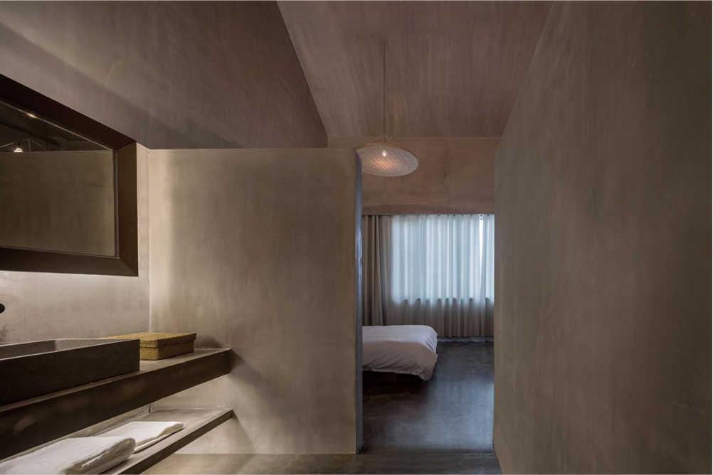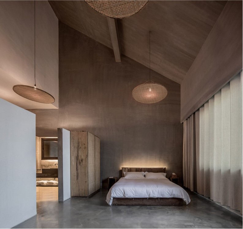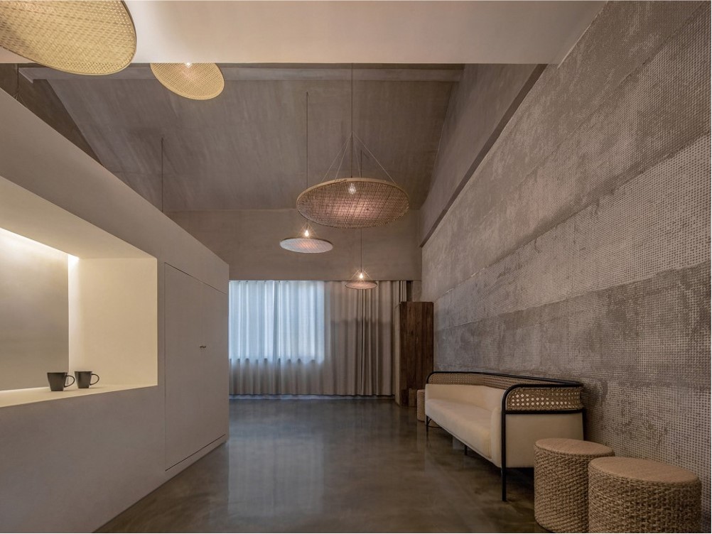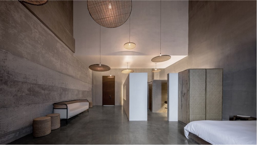 改造设计摒除了多余的装饰,通过对于素混凝土、回收旧榆木、竹蔑、藤等材料的运用,营造了一个内省、 质朴的精神理想国,进而唤起人们对于日常生活中物质、欲望的反思。