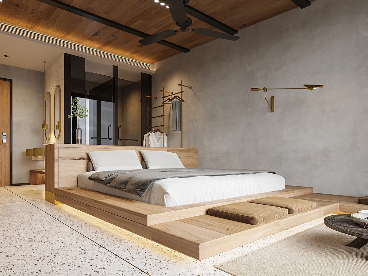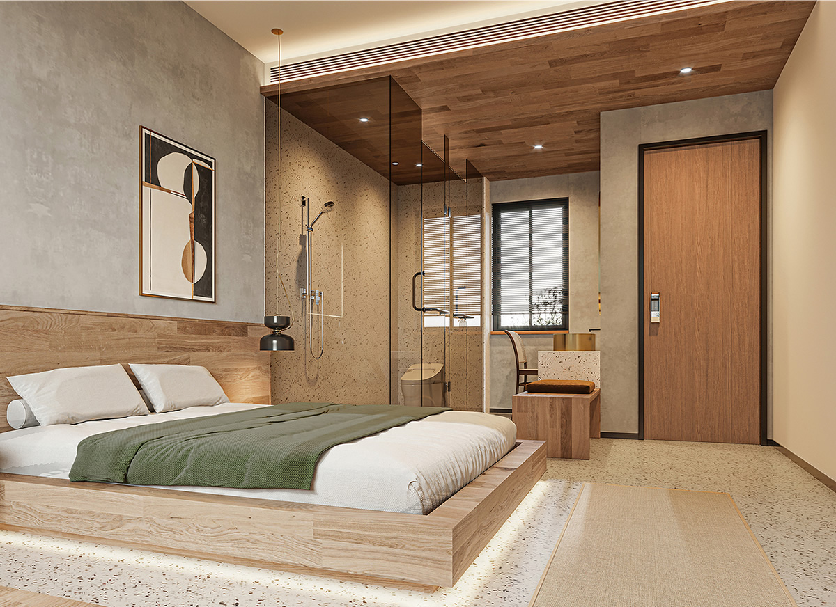 空间以禅意美学为理念,高端大气的乌金木,没有繁复的设计,也没有艳丽的用色。当傍晚时分,灯光亮起,映着暖色系的家具和外墙,如此温暖的氛围不费吹灰之力地让人放下烦扰的思绪。