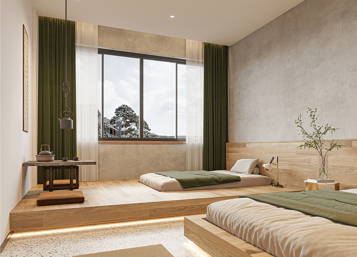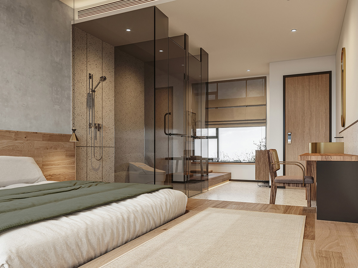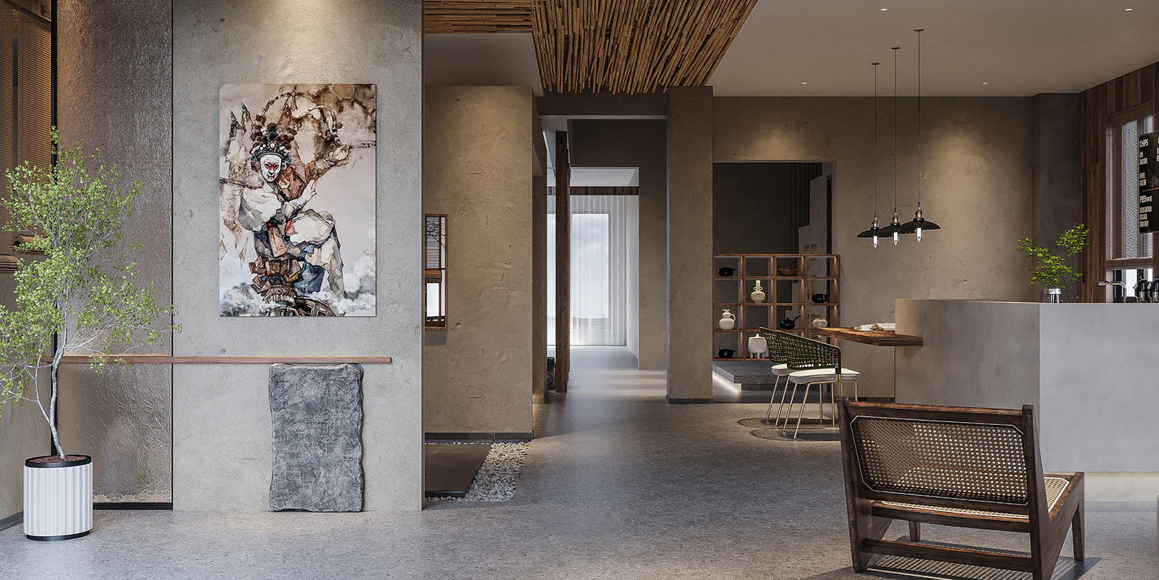 中式美学,大多讲究“盈满则溢”,凡事要留有三分余地,因而在美学主张上推崇大量留白,疏而不空,满而不溢,有种恰到好处的分寸感。摈弃繁杂,跳脱了沉闷,以现代简洁的设计语言,重塑更符合现代人审美的空间艺术,给来体验的客人提供无限想象的空间。