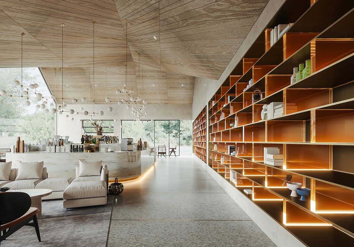 以玻璃和钢结构大橱窗设计,除了大幅度改善室内光照,可以容纳更多功能外,朴拙的水泥材料和简约通透的现代材料形成鲜明的撞击,营造了让人过目难忘的视觉趣味。