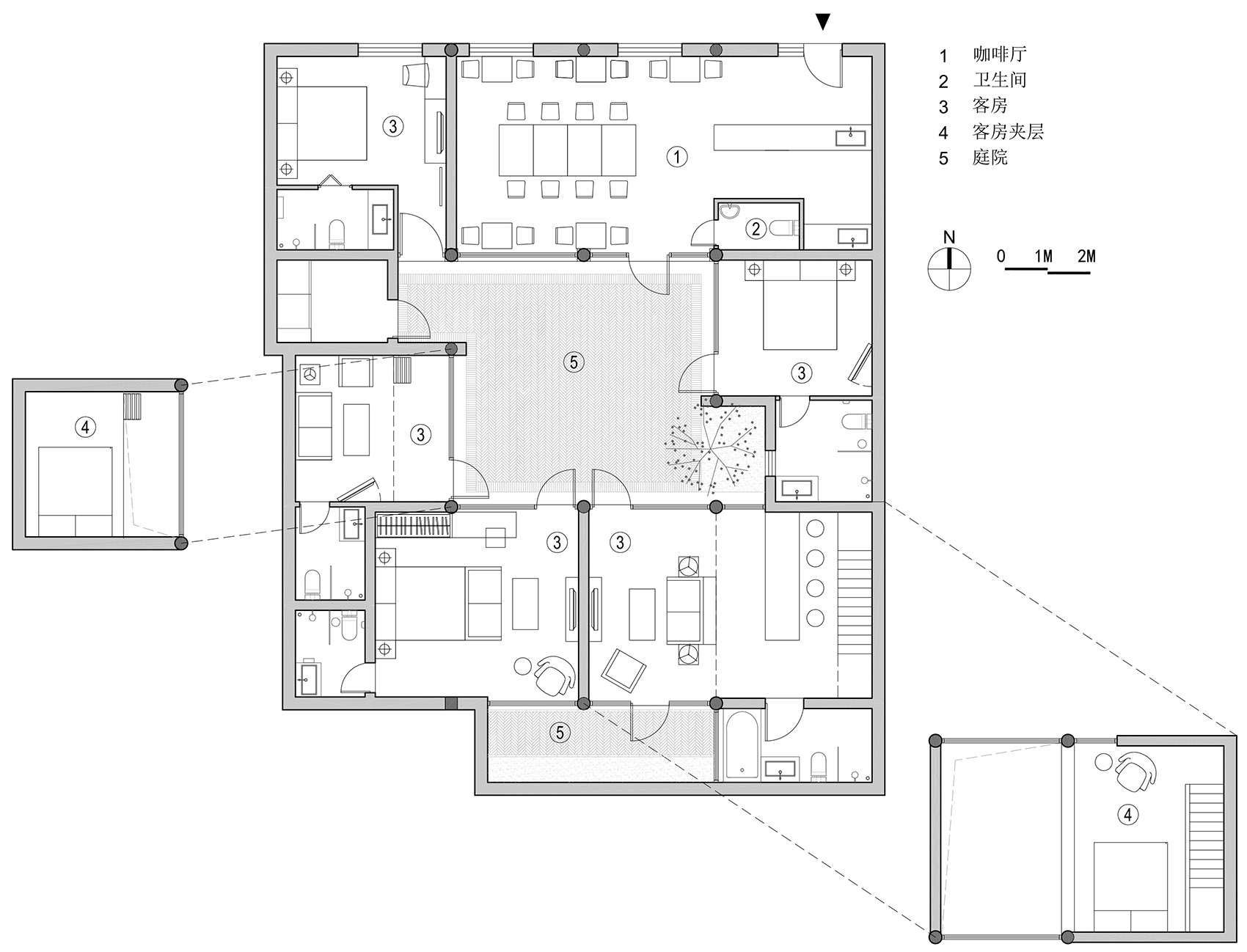 本案坚持“承袭人文之间,创新意想之余”的理念,深研东方文蕴的美学,以艺术为点缀,在爱慕客栈的设计中,发掘新的美学价值形态的美好,将返璞归真的人文之美融合旅行的仪式感,营造一个慢游忘忧的世外桃源旅居空间,予人极致东方的归属感和认同感,舒惬而自由。