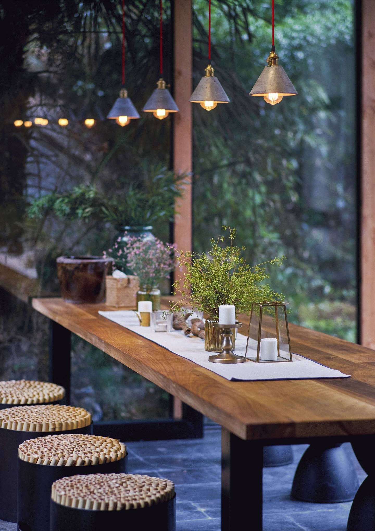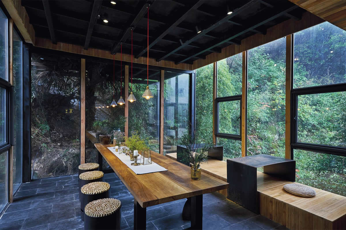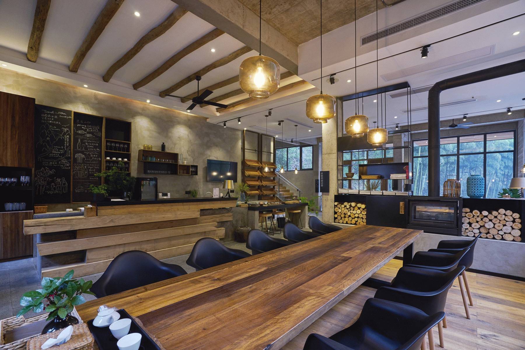 原木,总是让人感觉自然质朴,心生亲切;以原木材质为主要装饰材料,在加上黑色金属,给人一种温润、温暖的感觉。