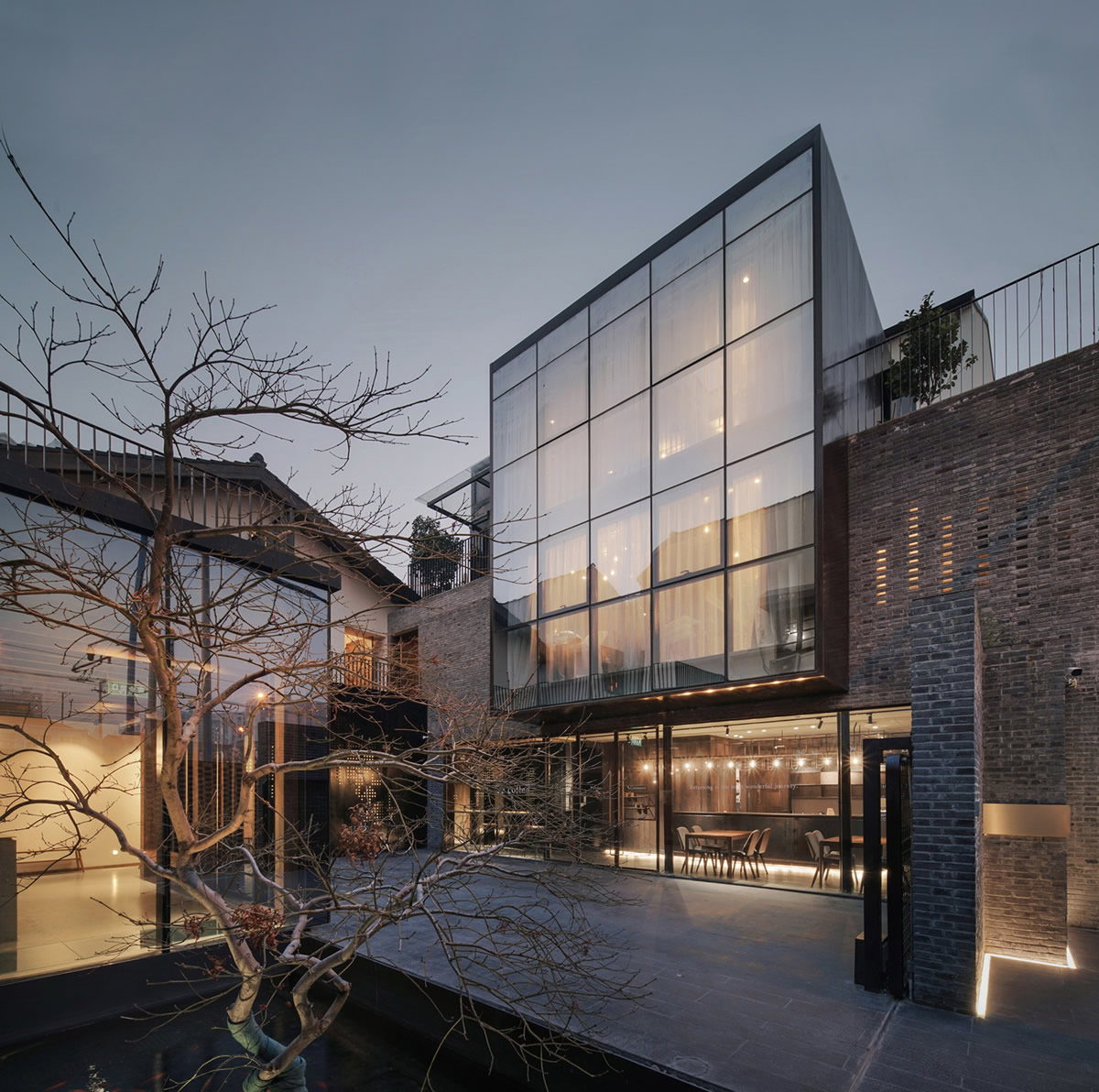 ※项目原功能是旅馆,随着时代变迁和城市再造更新,在加固原有结构的基础上解构新的民宿含义。楼内空间狭小,光线不足,改造的重点便是空间重构,为原本狭小昏暗的内部空间引入阳光和自然。在设计过程中解决了建筑间的孤立状态,使客房、前厅大堂和咖啡厅视觉上遥相呼应,院落的引入集中体现了传统建筑的造园思想。