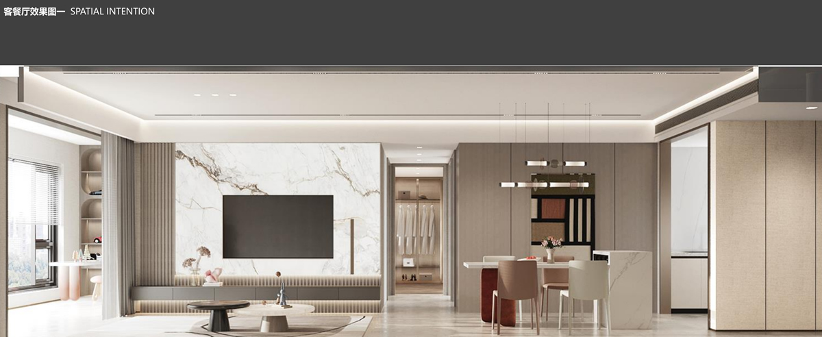 项目为高品质项目;设计从形、色、质切入,风格上以现代 高端为主要方向;方案以 “ 现代简约 ” 为主题 ,通过对空间比例和色调的整体打造,来体现项目的质感,打造高端、优雅、精致的都市生活。