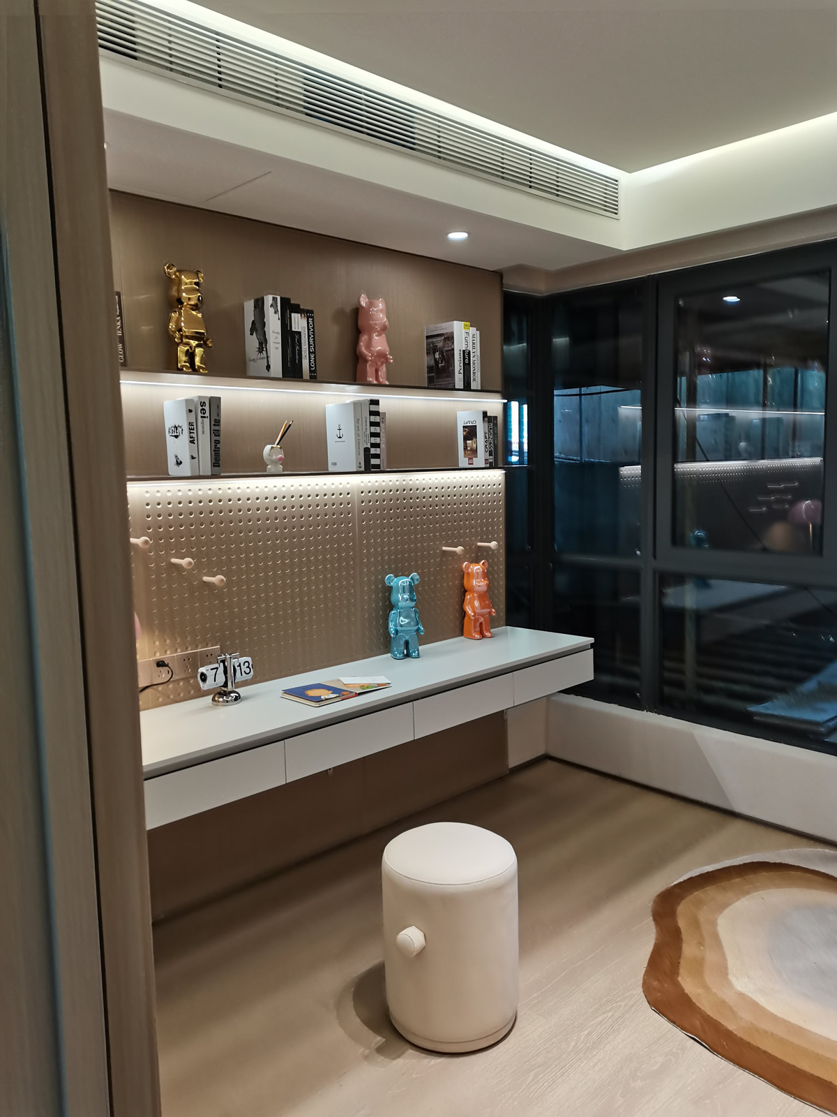 本案采用了岩板、金属、纹理细腻的木质、布艺、麻质墙布等材质,来营造舒适的居住氛围。