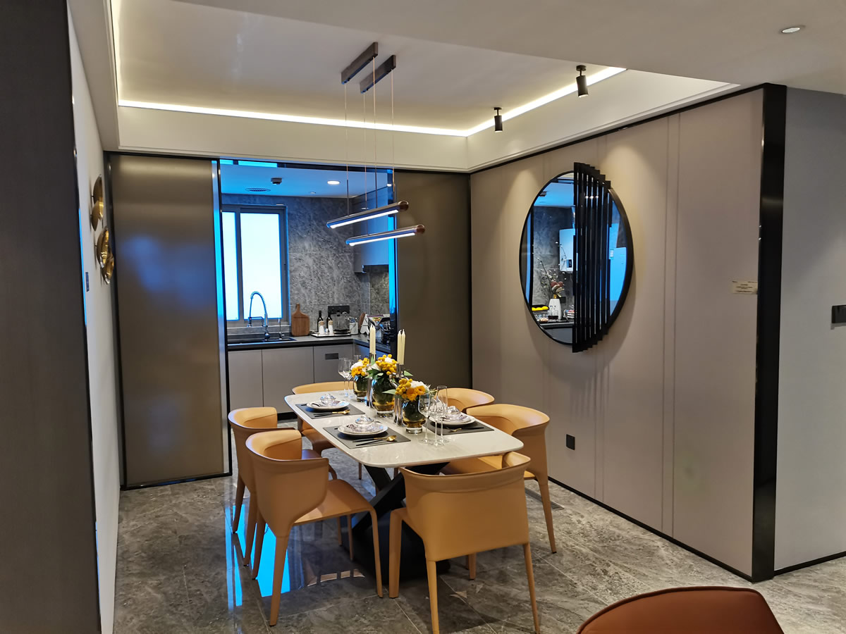 装饰要素主要采用金属材料、玻璃、线条简洁的家具、简洁大方的装饰造型等,简约不简单!
