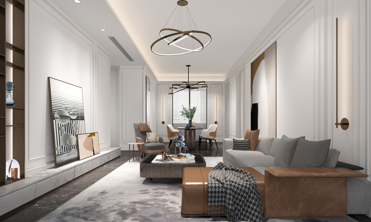 繁华都市中,艺术与空间相融合。木饰温润暖调渲染空间,突显自然品质。精雕细琢的细节、创意十足的灯饰挂件和品牌家具共同撰写诗意的居住空间,浸润居住者的心灵。