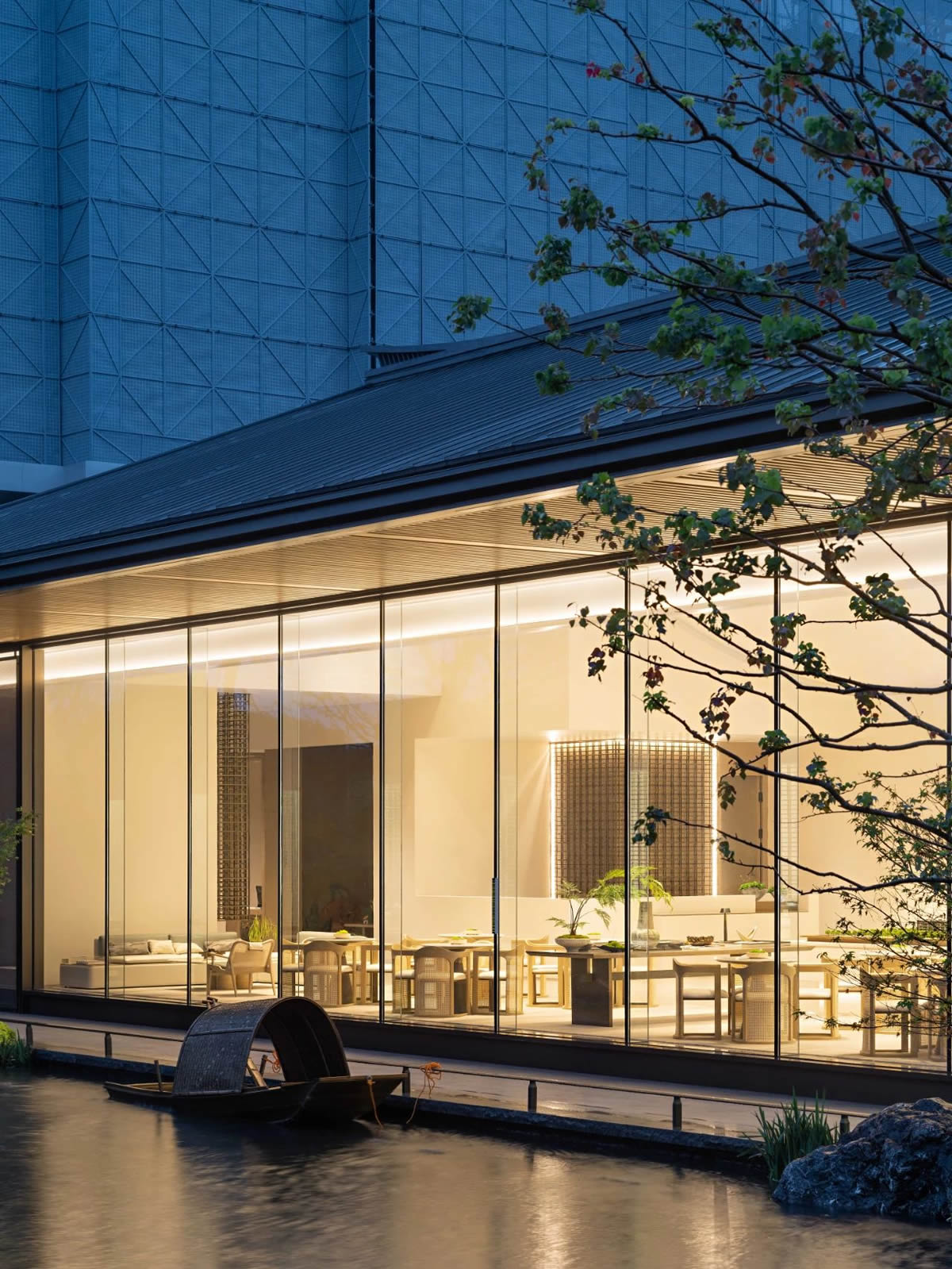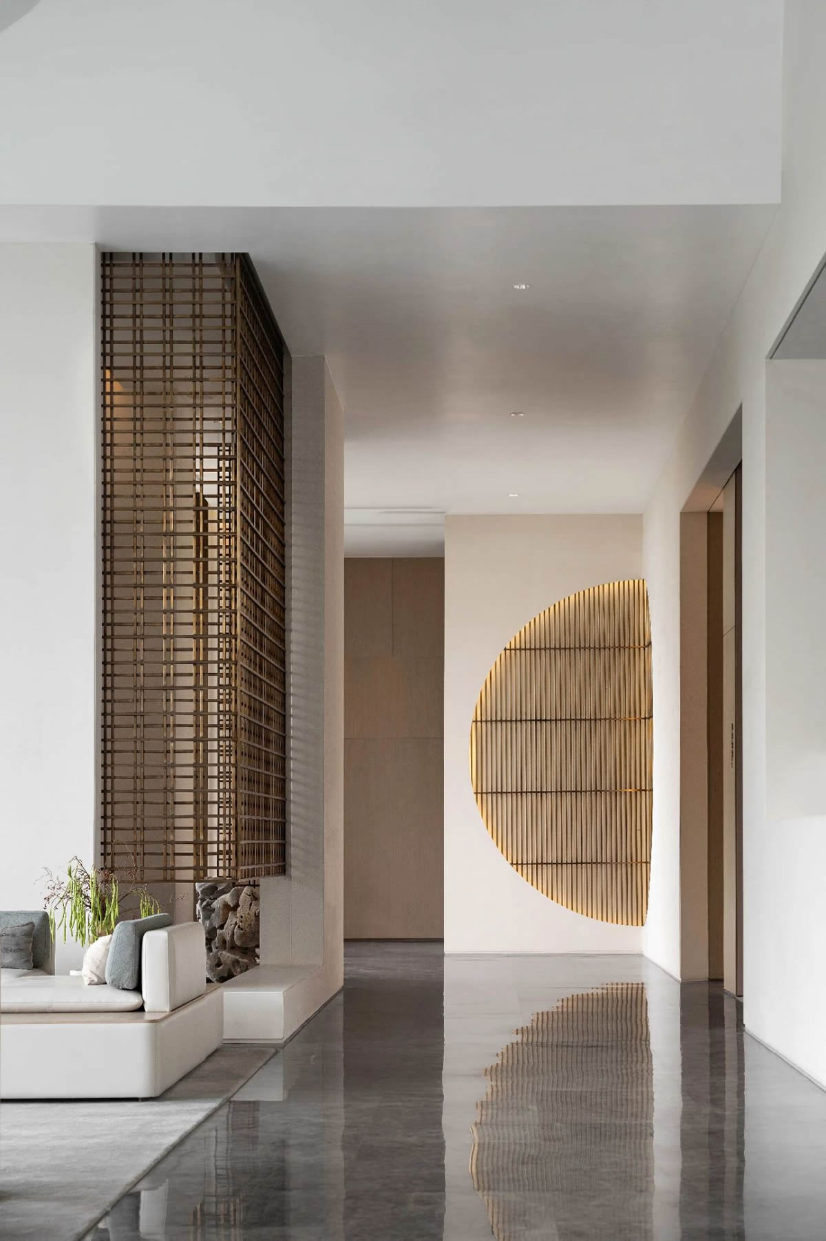 用白墙、金属隔断、木色等,加上绿植带的翠绿,在水吧区伸展开来,仿佛代表着传统气质的传达与延续,更是地域风格与设计的重新演绎。