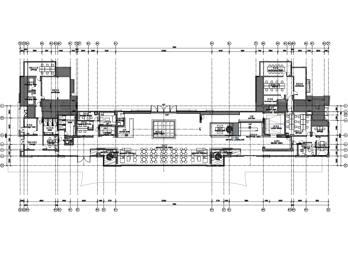 茶,源于草木,源于自然,人在草木间。洽谈区环绕水吧,极简的色彩搭配及桌椅设计,点缀些许绿意,自然,亦是空间的一部分,提升空间品质、促进空间活力。