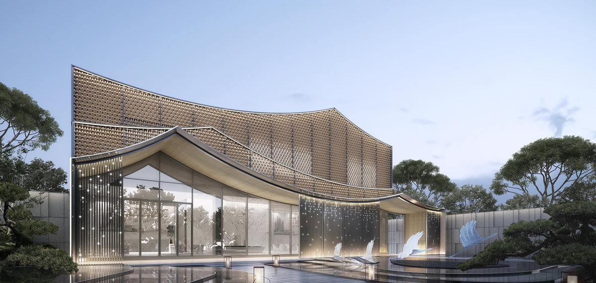 建筑融合传统书院文化的形式及特点,以现代的设计手法,重现新语境下的东方神韵。
