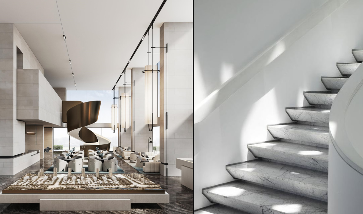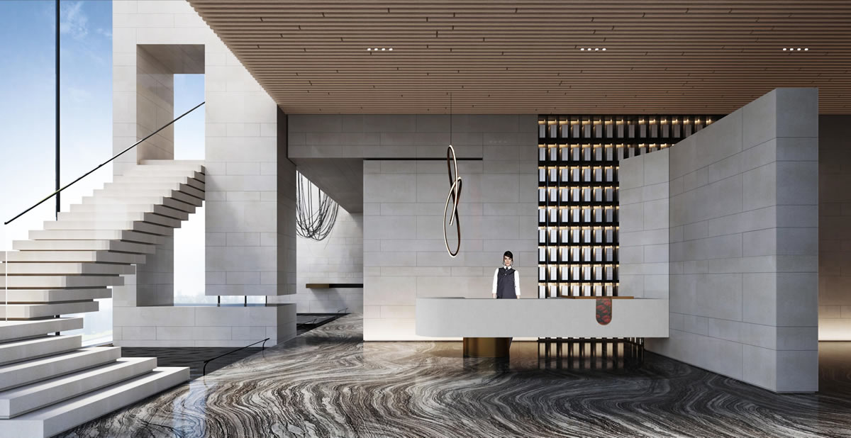 当室内空间入建筑体块、景观人文、山水气息,便有了繁华都市中静谧的一隅之地江月不随流水去,天风直送海涛来”,江之美景,水之韵味,成就了岸边的一方沃土。