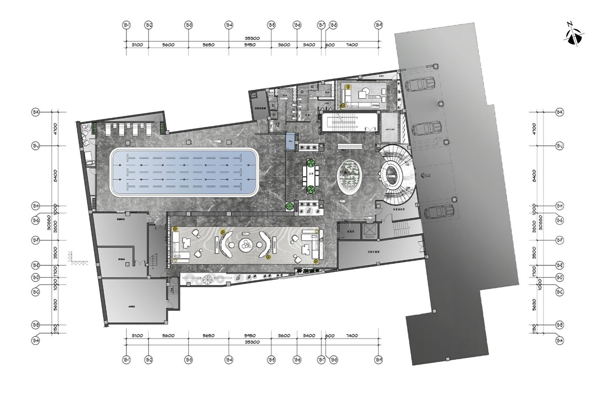“山光石影”。首層空间通透,簡約,容寂。如人之心包虛無,無所有而無物不有。視力所及,凡塵之地上,僅僅是現世人生的一處安止之所。