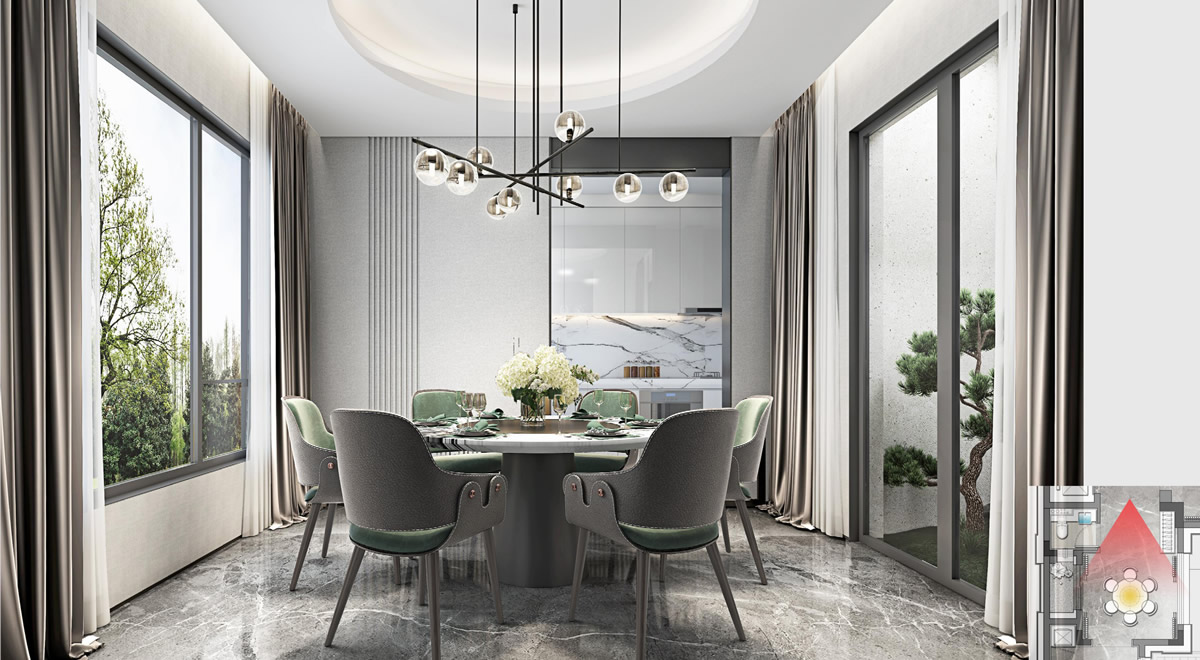 上午八点,男主人喝完最后一口早晨咖啡,关上电脑,提起妻子早已帮忙准备好的公文包出了家门。迎着阳光,新的一天就这样充满朝气的开始了。而家里,一进门就有一阵花香扑鼻而来,萦绕四周,香气四溢。餐桌上摆放着女主人精心设计的一组花艺,餐桌上摆放着精致的餐具。