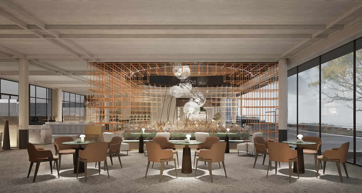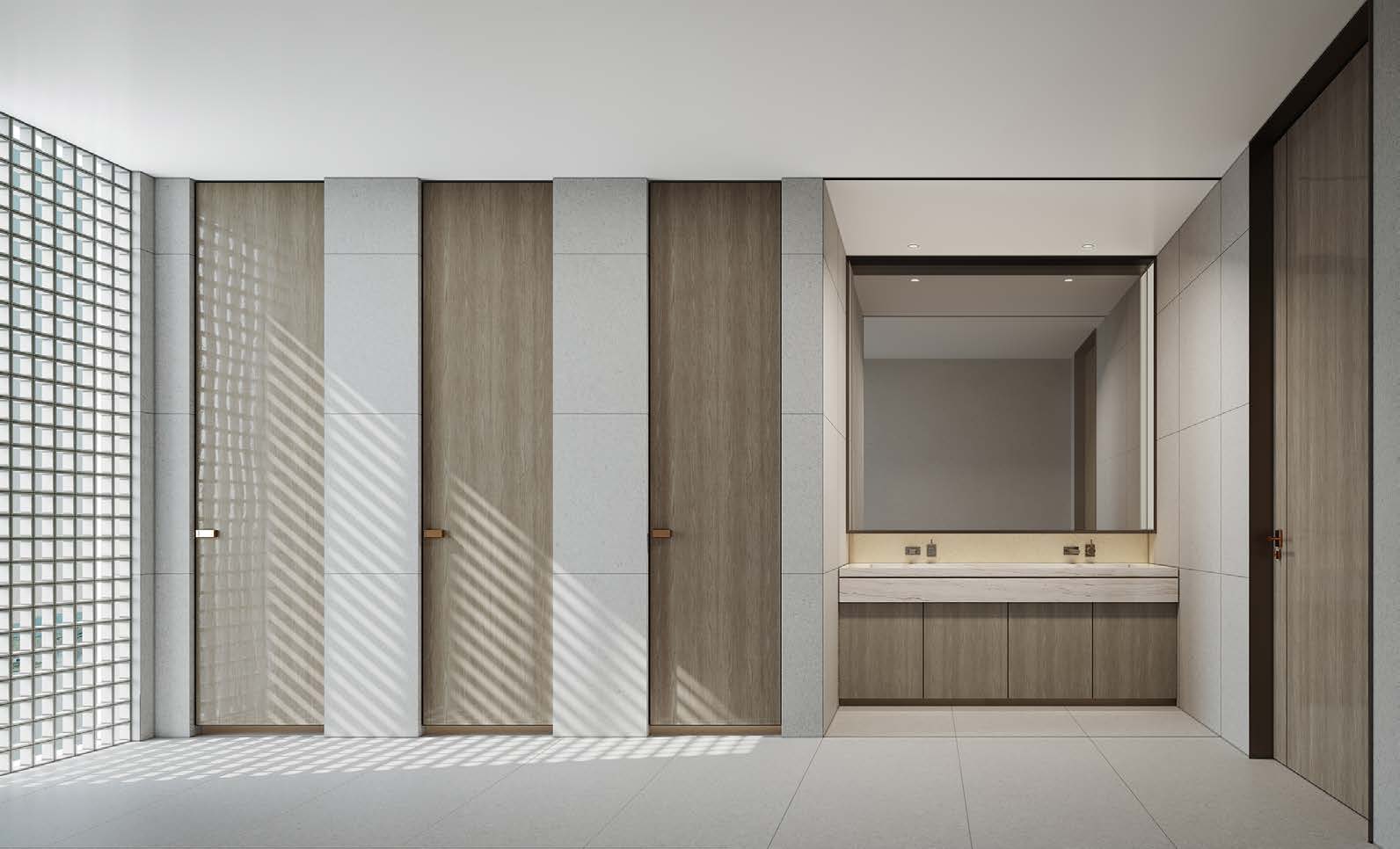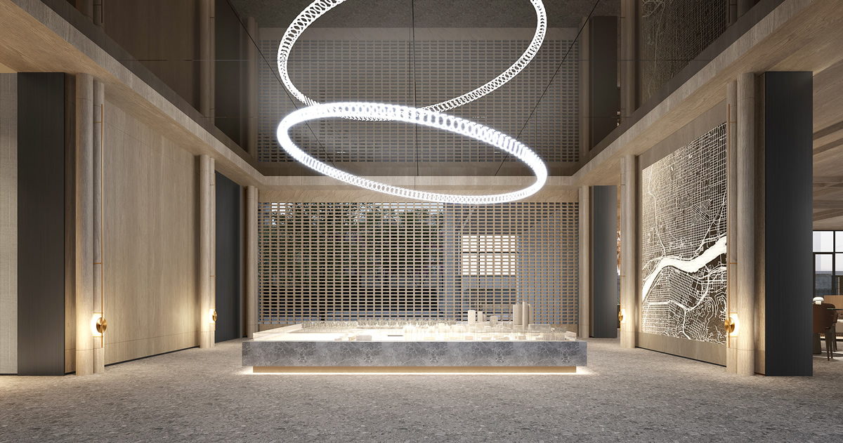 立面采取做高一层的手法,实现竖向体量的拓展,以保证良好的视觉效果。重叠相映的玻璃砖,随着人行的距离和角度的不同,形成动态的梦幻效果。室内则通过细长延续的通道,结合线性的设计,营造空间的深远与修长。