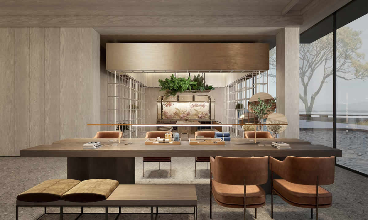 趣舍的外观,只看一眼就会被那横竖的直线条间柔美的弧度所吸引。这是一座和山体、竹林紧紧相连的建筑,甚至室内一面直接以山体为墙,独特的设计创意让趣舍多了份与众不同的意味。