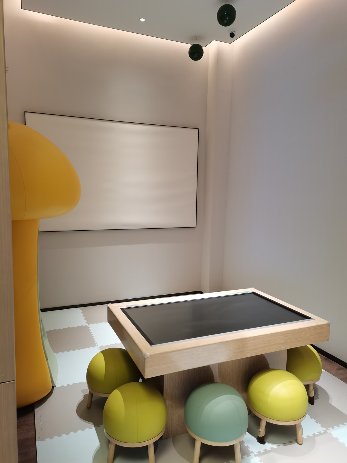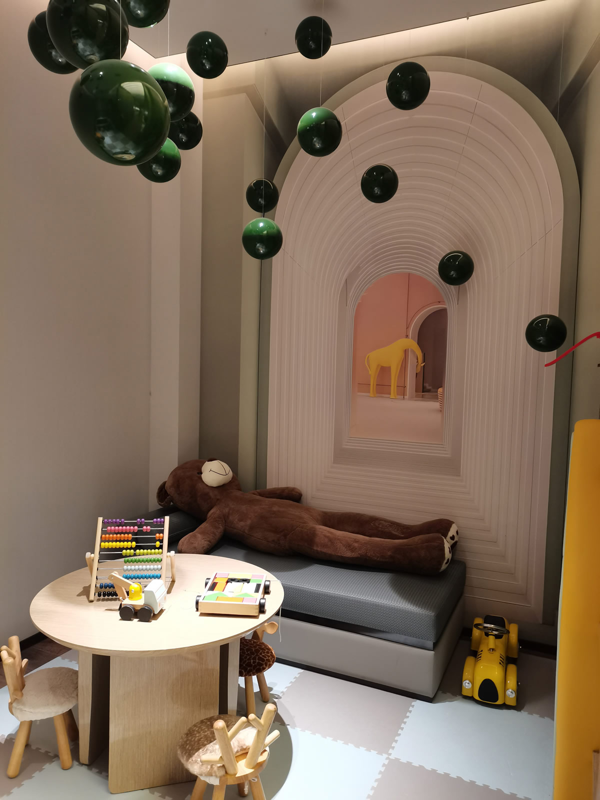 儿童活动区是一片鲜艳的缤纷海洋,从沙发挥洒至地毯,色彩布局一气呵成。