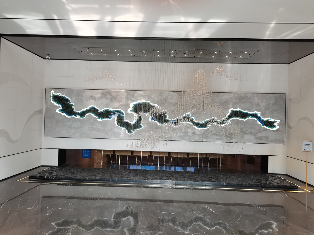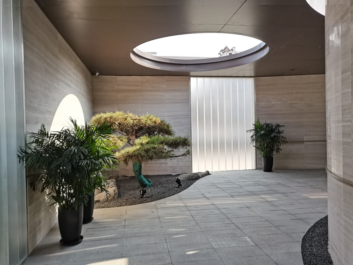 设计美学充满抽象感,采用了柔化光幕立面,前方的水景和老树相伴,营造出一种静谧、安详的氛围。当您走近售楼处时,内部景色也会隐晦地映射在光幕上,让您感受到这座城市大境的独特魅力。