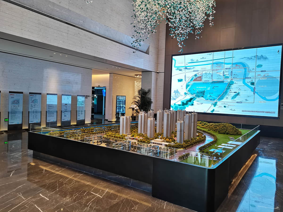 中部大厅采用了挑空层,8米挑高,4米羽翼水晶灯直射沙盘。自然流畅的设计展现了空间的开阔气势,同时也将原本的两层空间合二为一。一系列细致处理,共同呈现出大气恢宏的整体钜献。