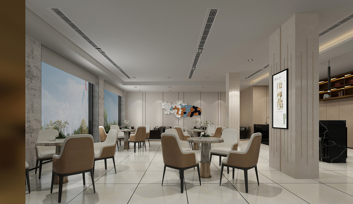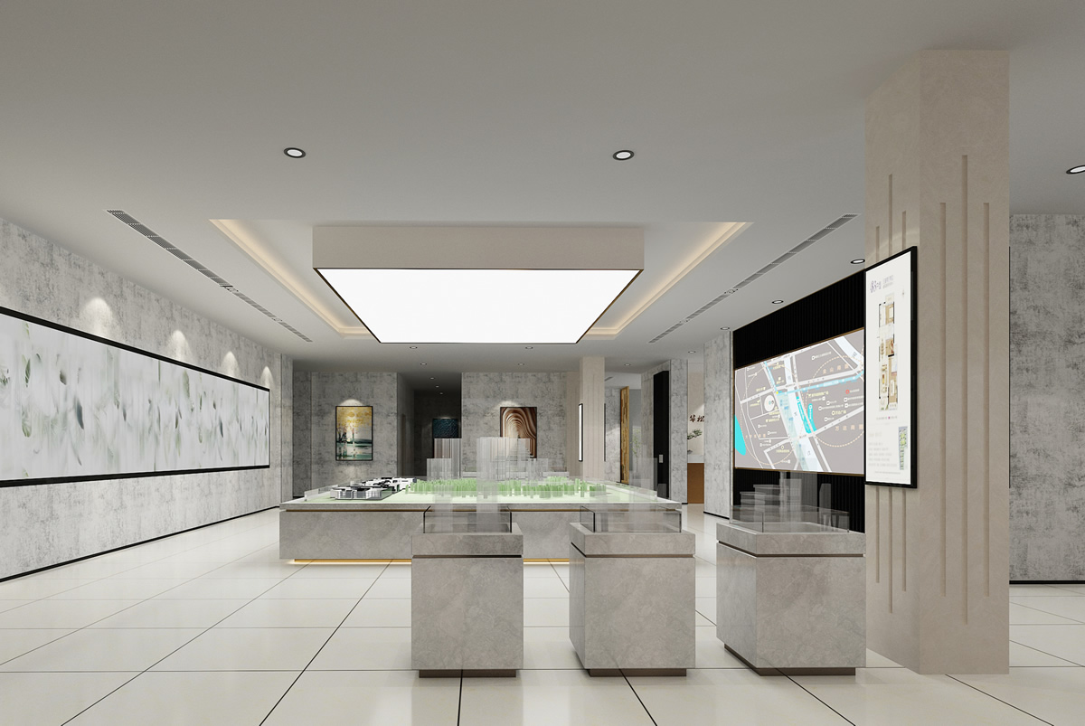 该售楼部主要采用现代简约风格,设计师通过浅色石材,复古灰色铝板,混凝土清水漆,以及局部采用精品不锈钢装饰等装饰手法将售楼部打造成简约不简单,万物皆有灵,皆在匠心运。