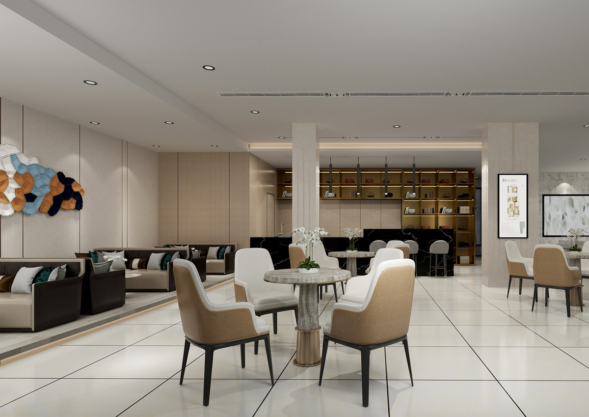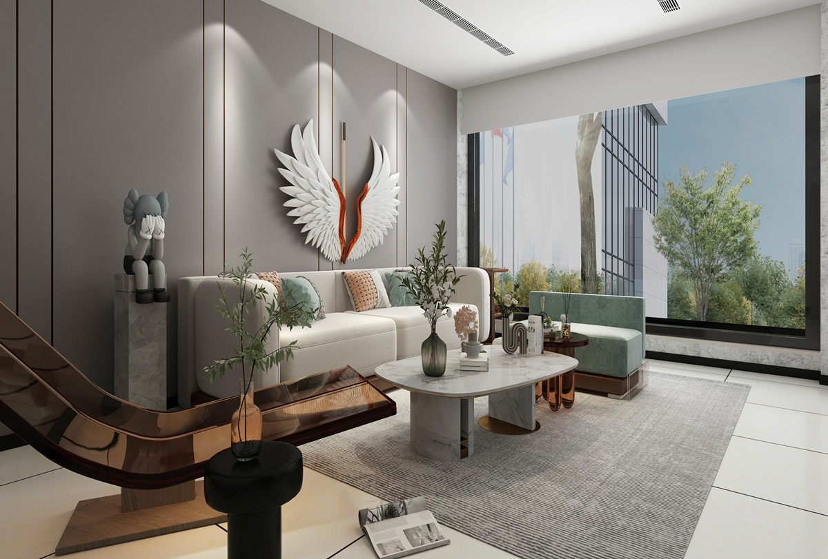 半开放的签约室,使社交会晤不再单调,融入整体的空间风格中,将时代所赋予的安静与宁性。