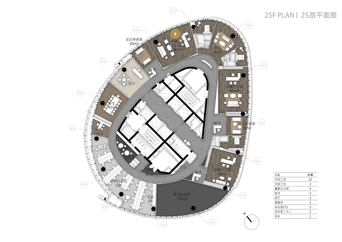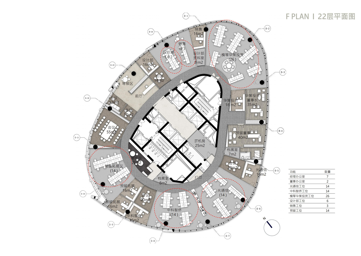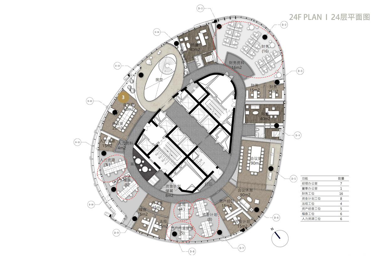 楼层的进深较小,内侧采光较好,同时为设置丰富的空间类型以及模块化设计提出了挑战。